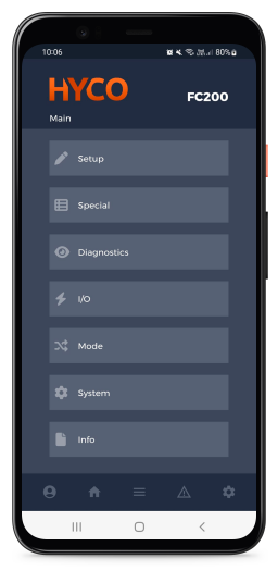 HYCO è la App di Hyterm che, grazie alla tecnologia bluetooth, permette di gestire e monitorare il funzionamento dei regolatori della famiglia FC da dispositivo mobile.